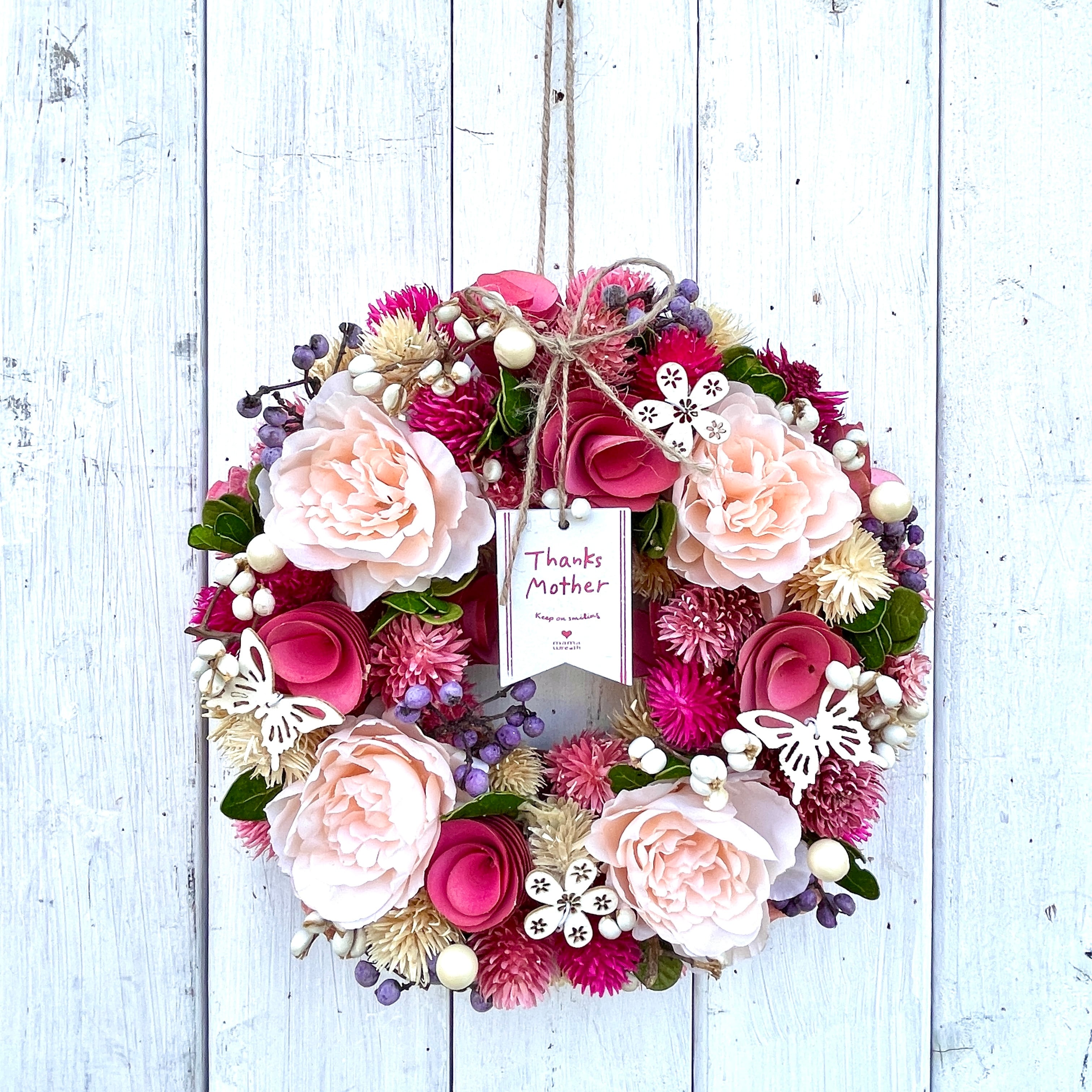 [母の日限定ギフト] オーロラリース ナチュラルリース ピンク パープル パール オールシーズン 春夏秋冬 ギフト プレゼント フラワーリース ドライフラワー 【WR-47-B】
