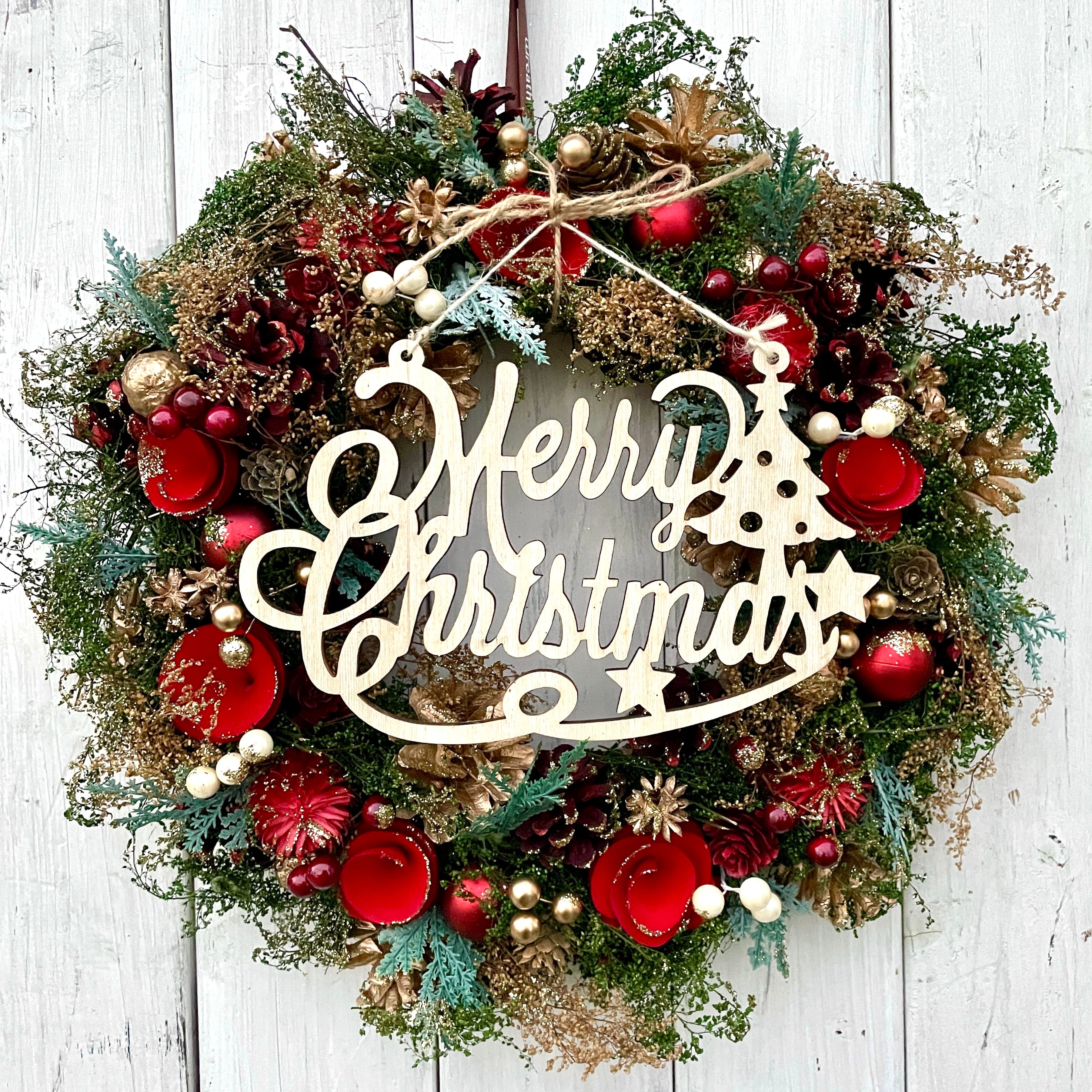 ナチュラルな雰囲気があり、王道デザインのクリスマスリースです。