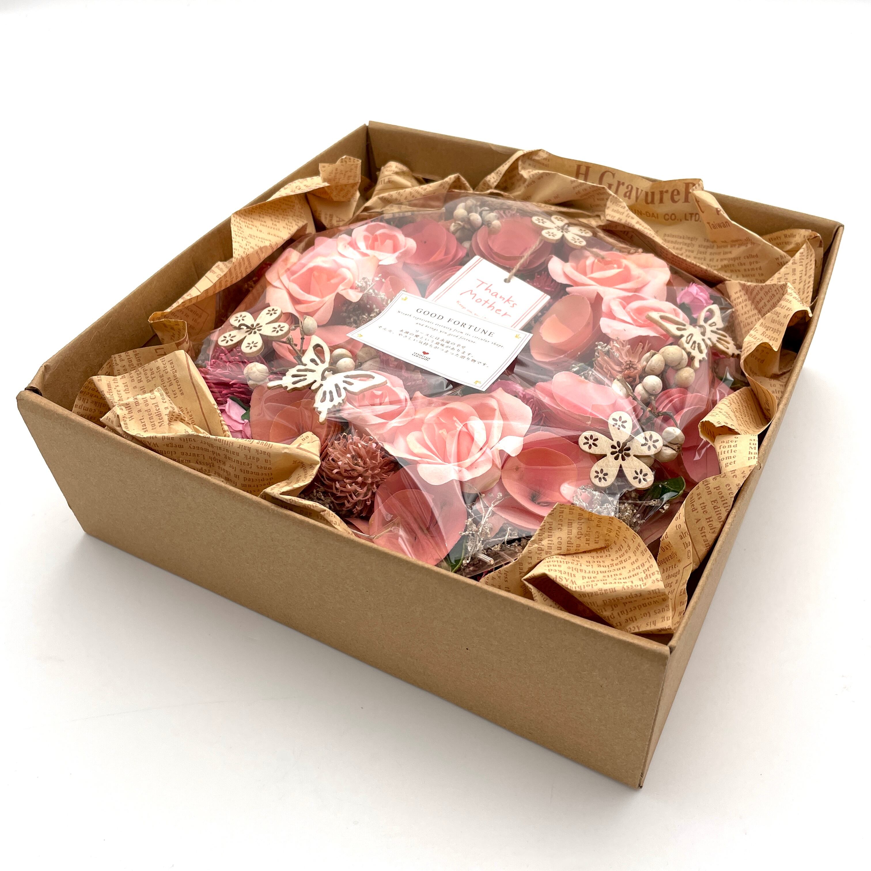 [母の日限定ギフト]大人可愛いローズピンクリース くすみカラー ナチュラルリース オールシーズン 春夏秋冬 ギフト プレゼント フラワーリース ドライフラワー 【CXO-WR18S-MP】