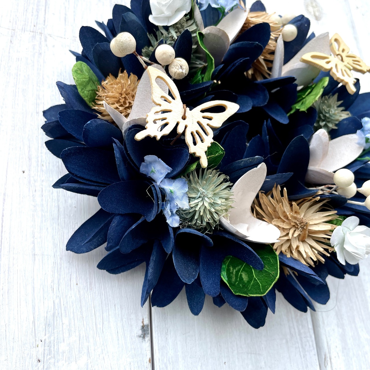 小さいネイビーリース ナチュラルリース オールシーズン 春夏秋冬 ギフト プレゼント フラワーリース ドライフラワー 【CXO-921SS】